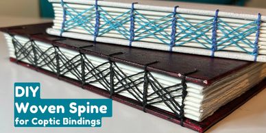 This decorative woven zig zag design is simple to add and does not interfere with your sewing! It’s easy to undo and remove! NO sewing frame needed! Books sewn in this demo are both single needle coptic bindings. But! This weaving should work for most coptic bound books!